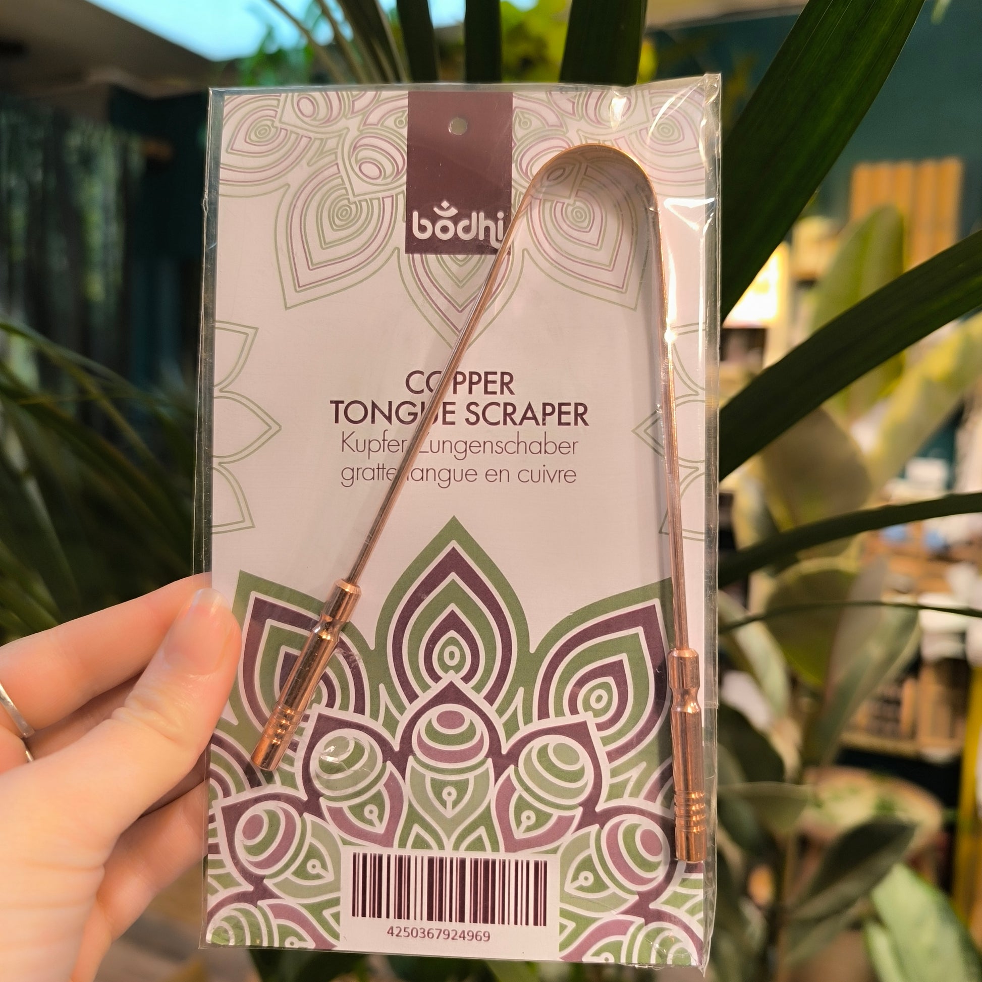 In addition, cleaning with a tongue scraper prevents bad breath and inflammation in the throat area. The tongue scraper is made of 100% copper. Because of their antibacterial and antimicrobial effects, copper tongue scrapers are much more hygienic than plastic tongue cleaners. Copper does not rust, however, discolouration or a patina may occur on the tongue scraper. These can be removed with vinegar and salt. This does not affect the effectiveness of the tongue cleaner.