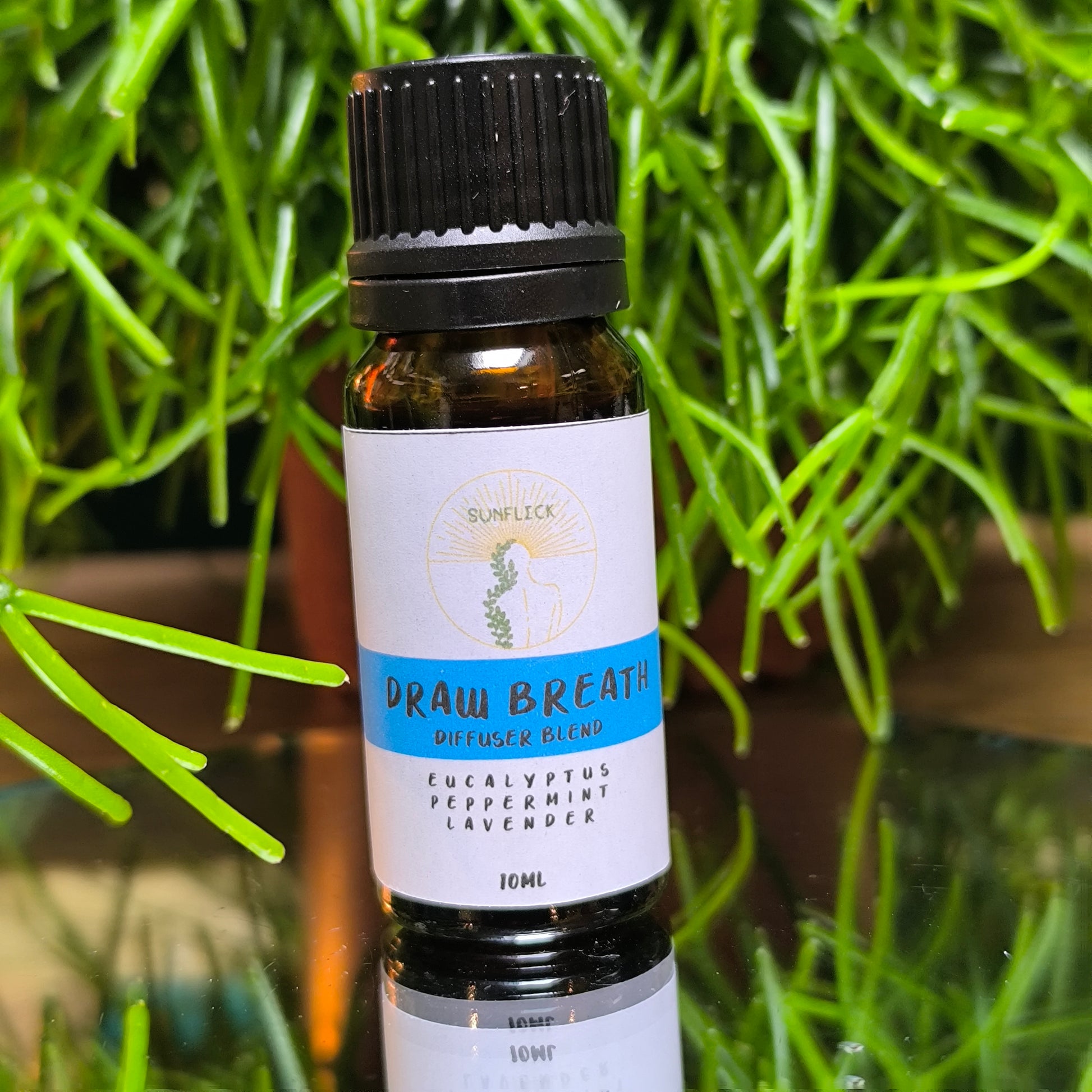 Eucalyptus is the main part of Draw Breath, and my absolute “must-have”. I have had hay fever for 10 years and started reacting to dust over the 2020 lockdown. Using drops of eucalyptus on a tissue of diffuser was the only that gave me immediate relief from the allergies. Now I can carry this blend around with me day-to-day.