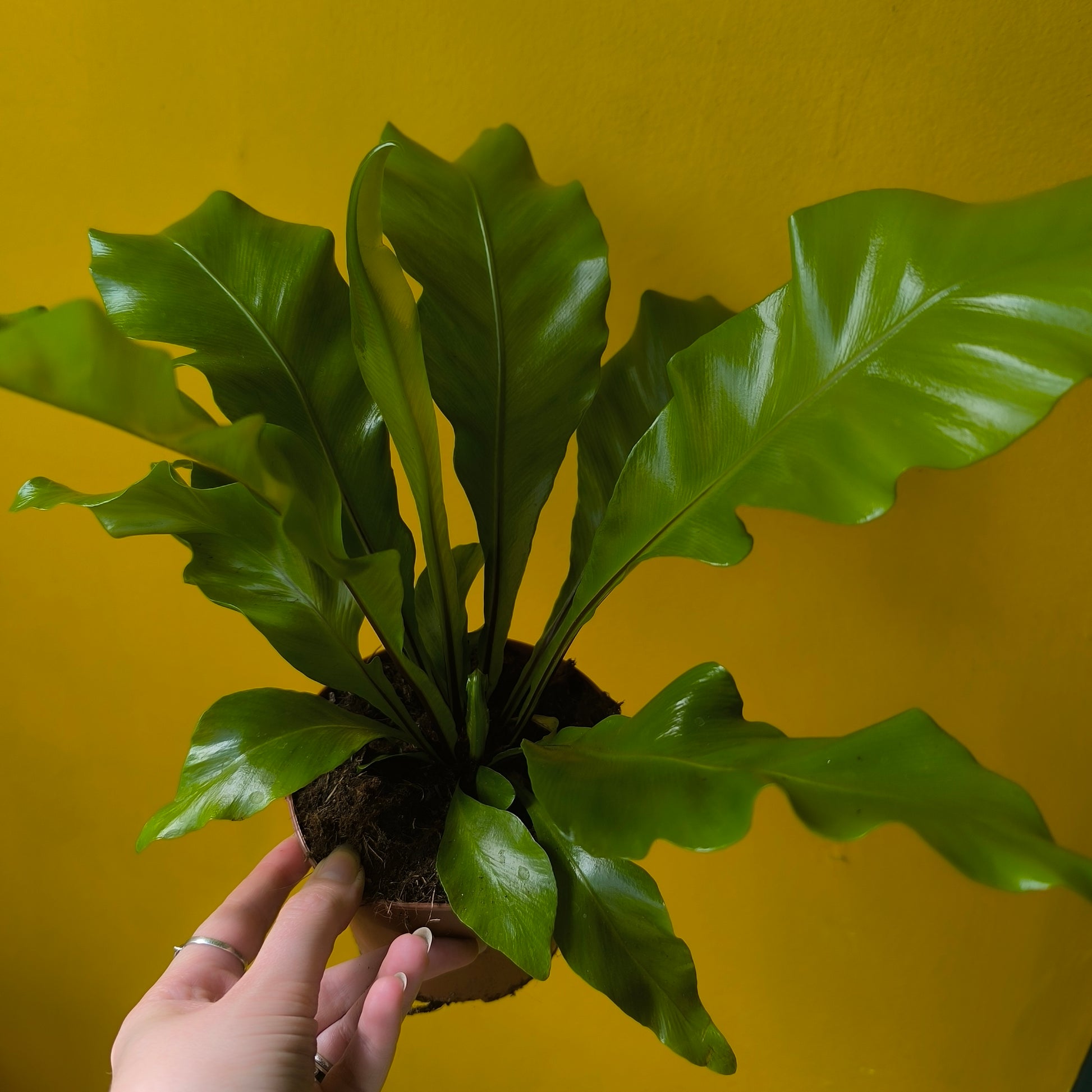A unique and captivating tropical plant with its distinctive, nest-like fronds. This epiphytic fern thrives in humid conditions ideally but is not too fussy. Its unusual bright green fronds shaped in a whorl create a lush and exotic atmosphere, making it a popular choice for indoor gardens or as a statement piece in living rooms.