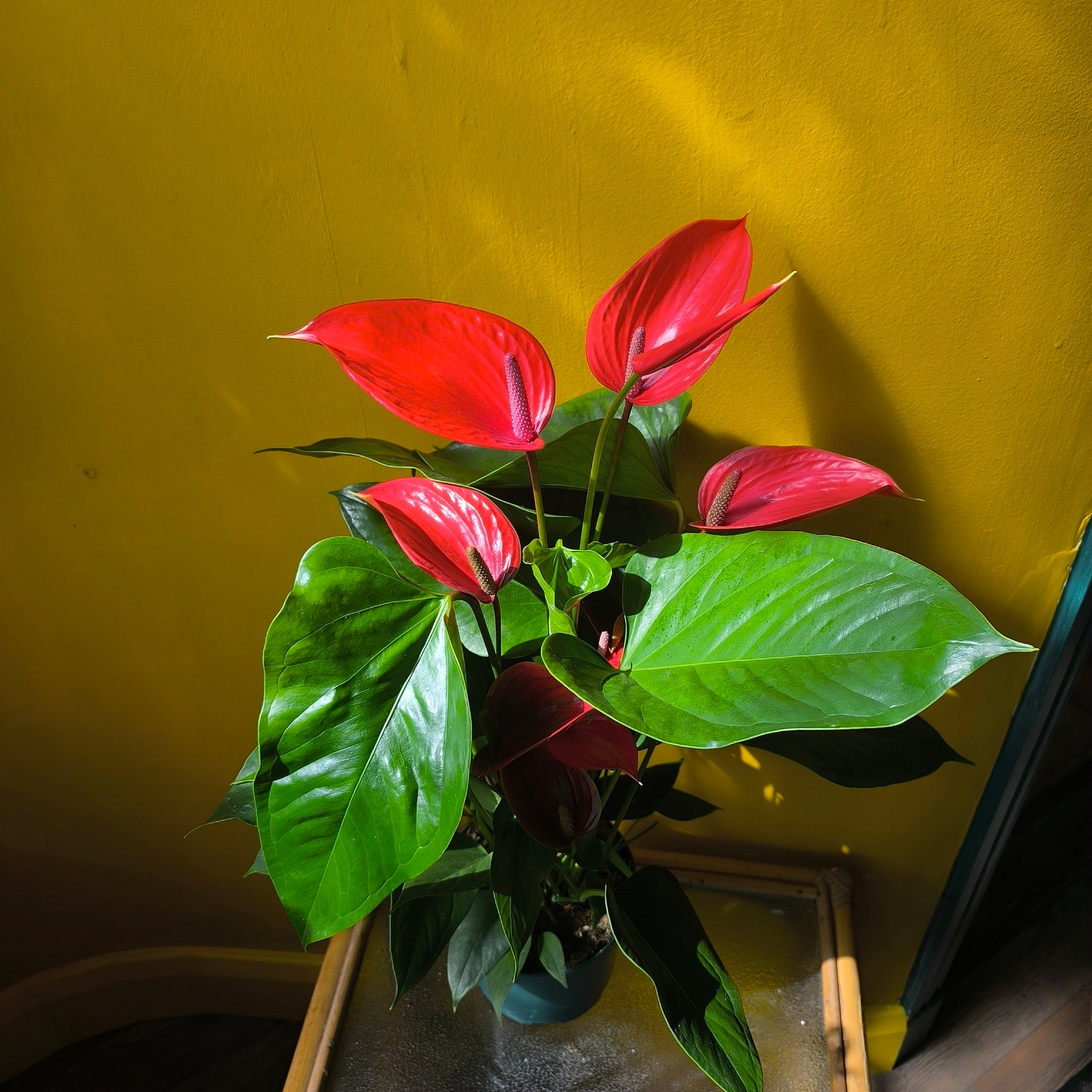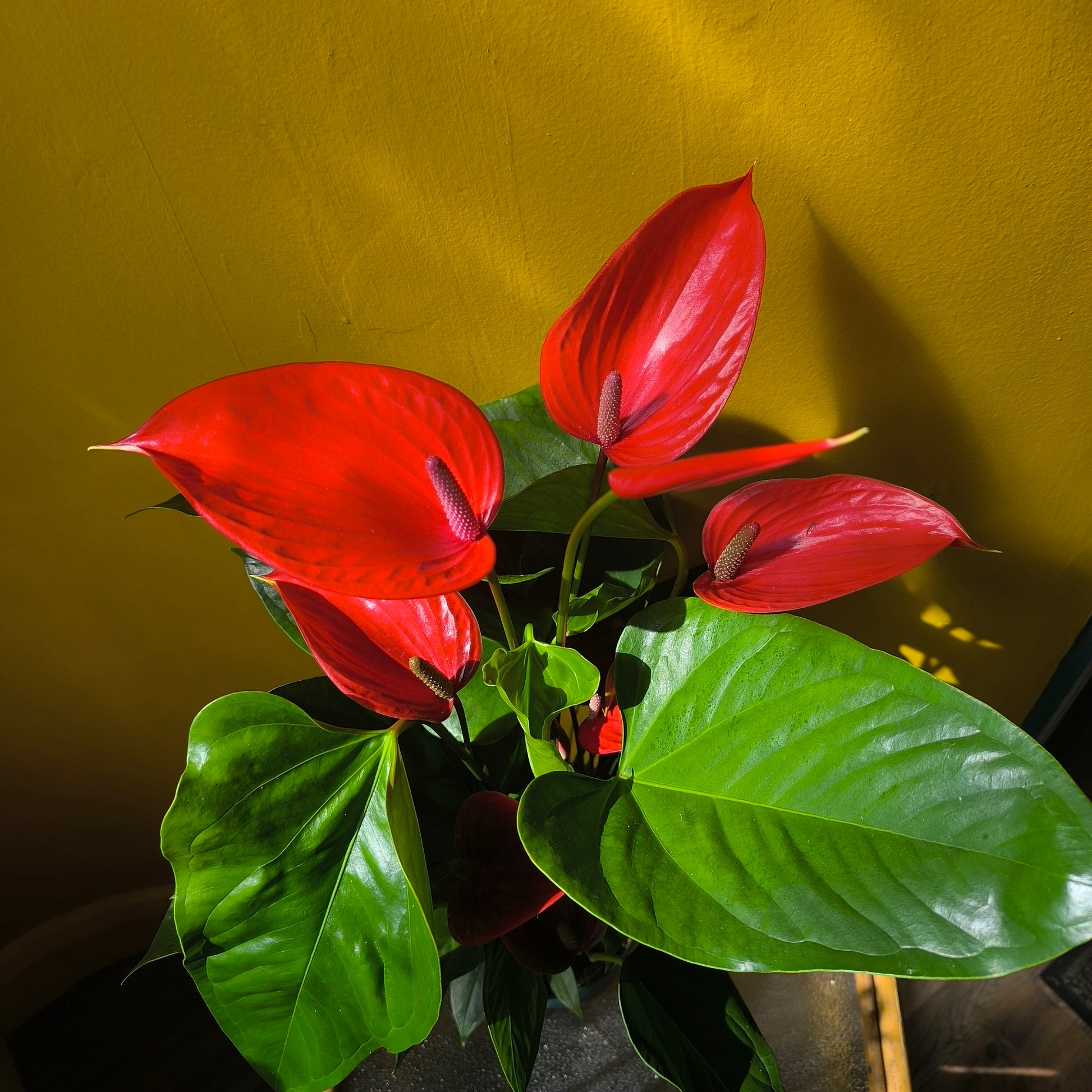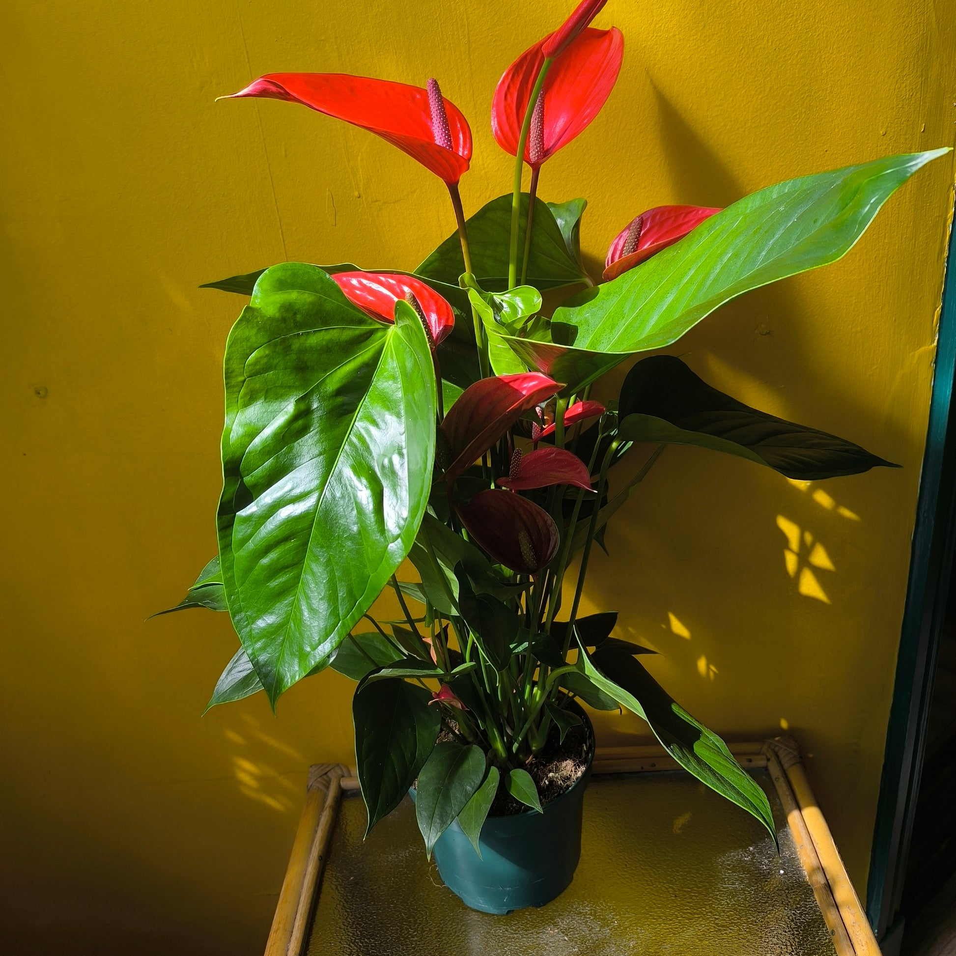 The Flamingo Flower (Anthurium) is a stunning houseplant known for its vibrant bracts that resemble delicate flamingo feathers. This unique tropical plant adds a burst of color and exotic charm to any indoor space. With proper care, this Flamingo Flower will bring a touch of the tropics into your home for years to come and flowers every year all year round .