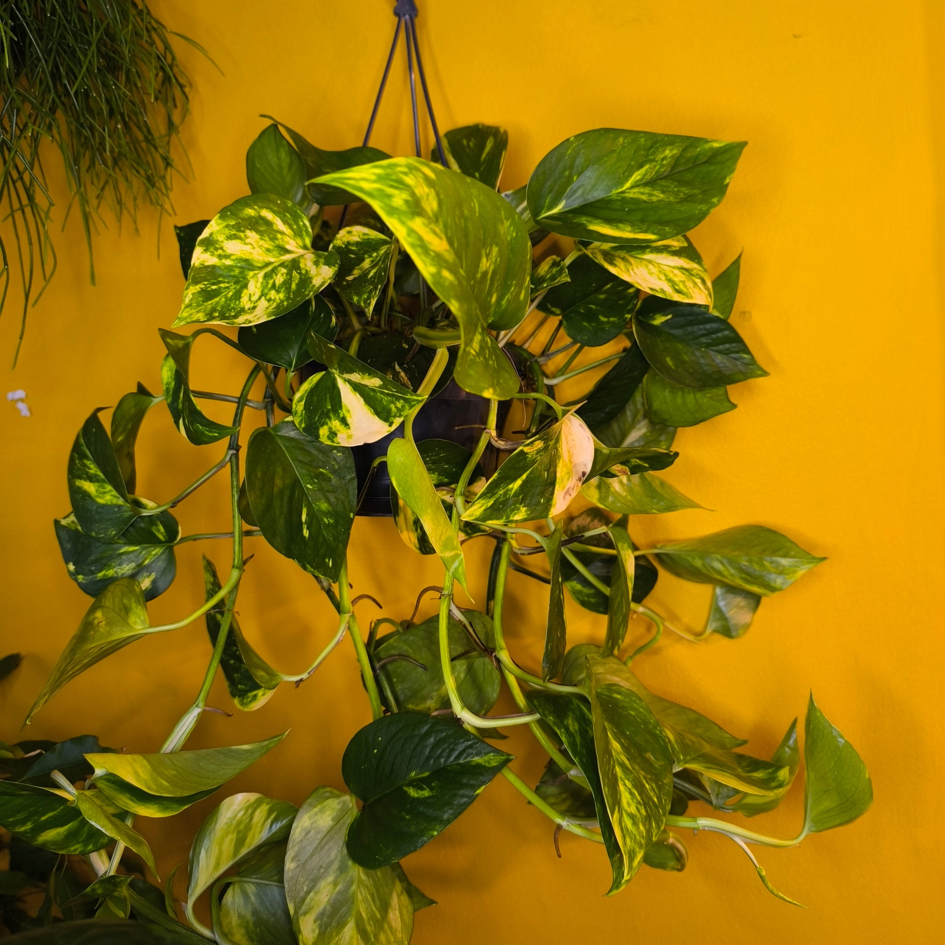 Introduce a touch of nature's vibrancy to your home with the Golden Pothos. This captivating vining plant showcases a delightful blend of green and gold hues, creating a visually stunning display. Its small, ivy-like leaves cascade gracefully, forming a lush and full pot that grows rapidly.