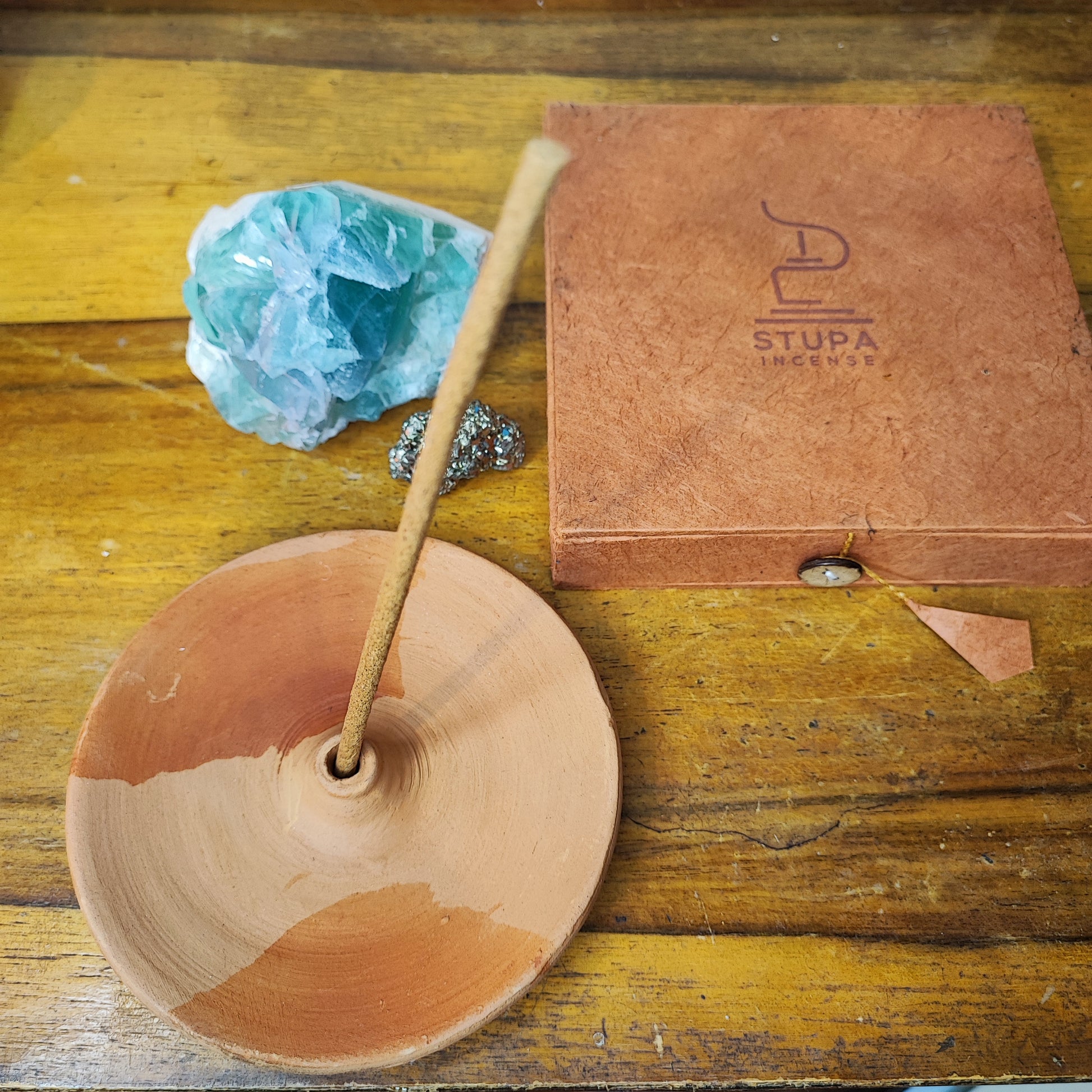 Hand thrown, terracotta or blackfire terracotta incense holder by local makers.
