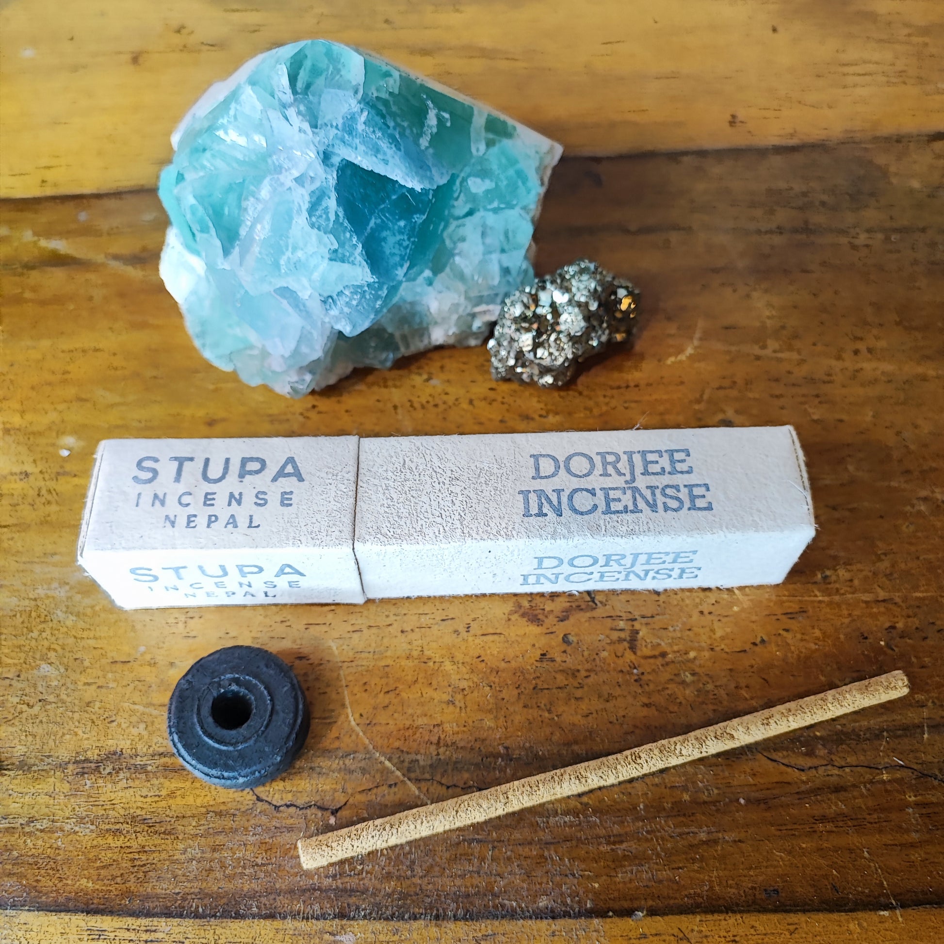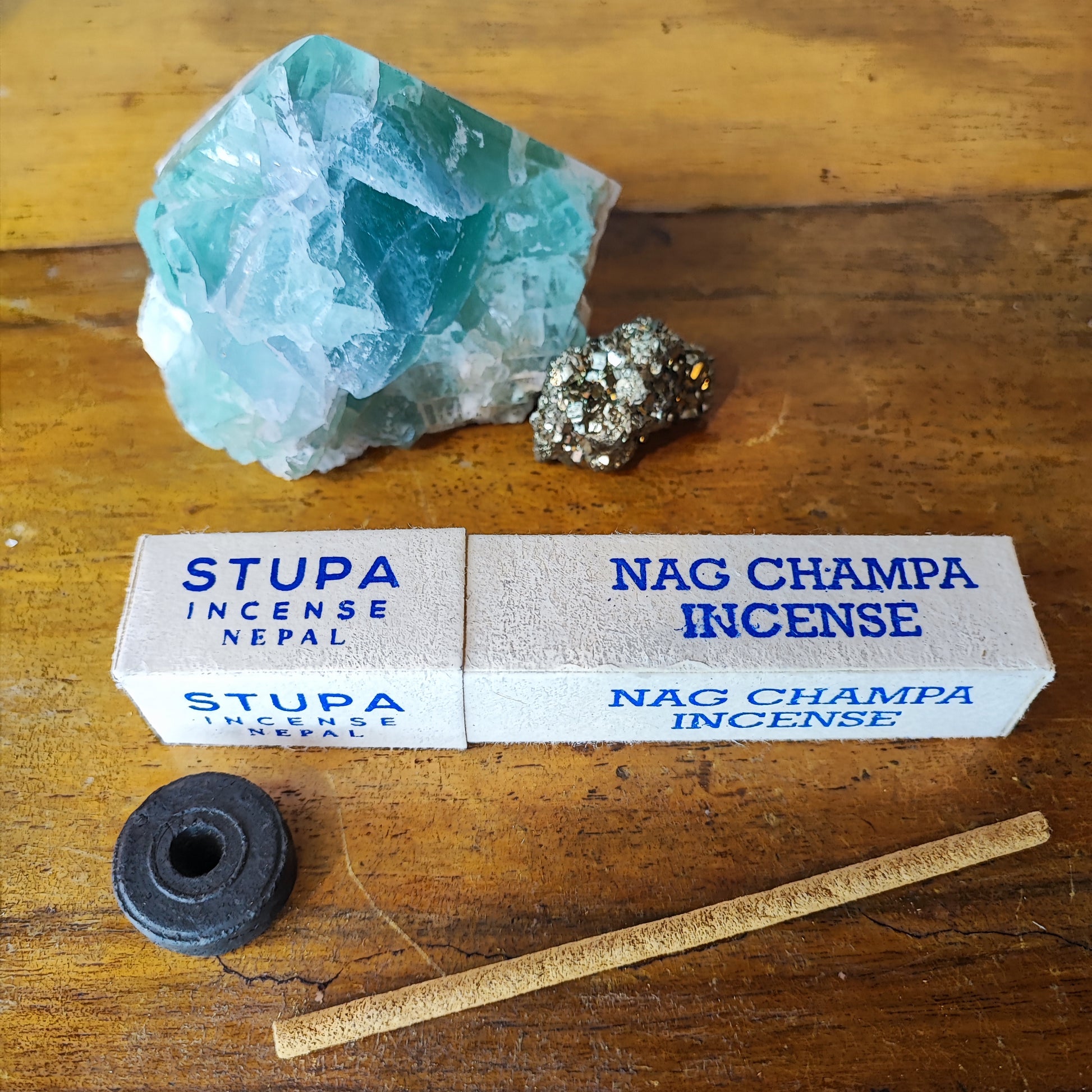 Unique handmade incense and holder from Nepal with only natural ingredients.