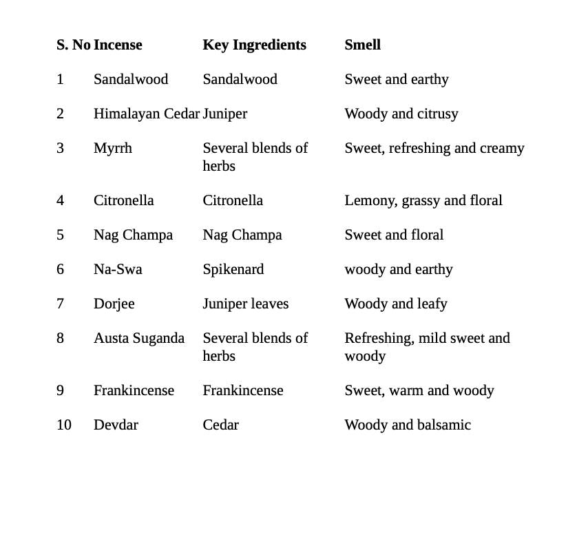 5. Nag Champa (Notes of Nag Champa, Sandalwood)