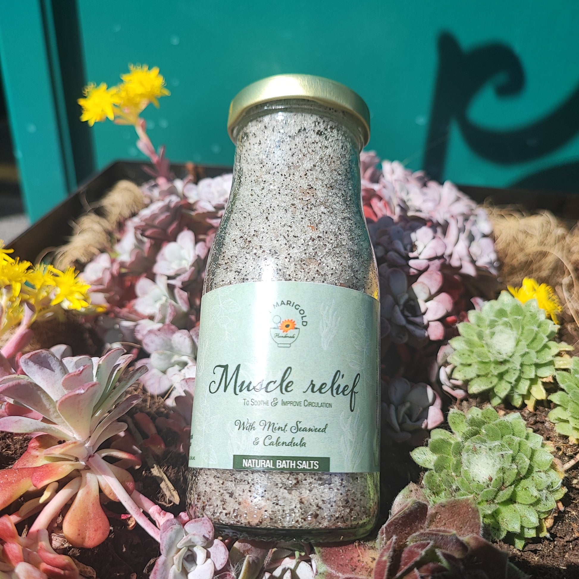 Muscle Relief : the muscle relaxant. This soak contains peppermint oil for easing muscles aches and leaving your mind feel refreshed. It also has seaweed powder for nourishing your skin and adding antiodants to your body, easing sore cramped muscles, easing skin conditions and stimulate new cell growth. Perfect for after exercise, being on your feet all day or for other conditions that cause muscle aches, pains and tightness