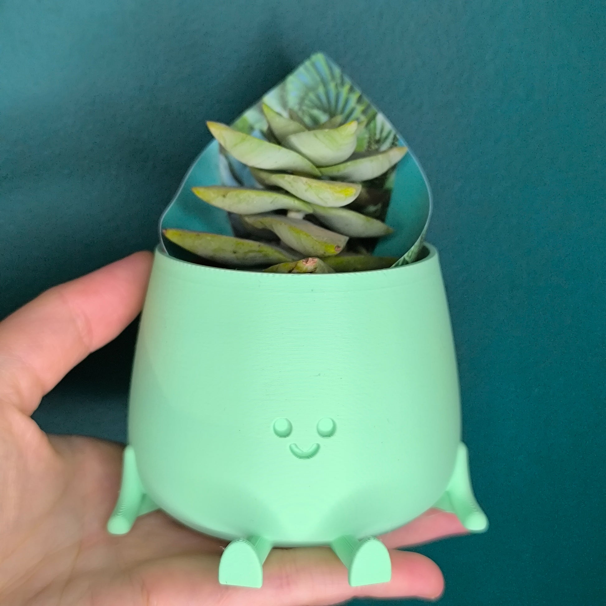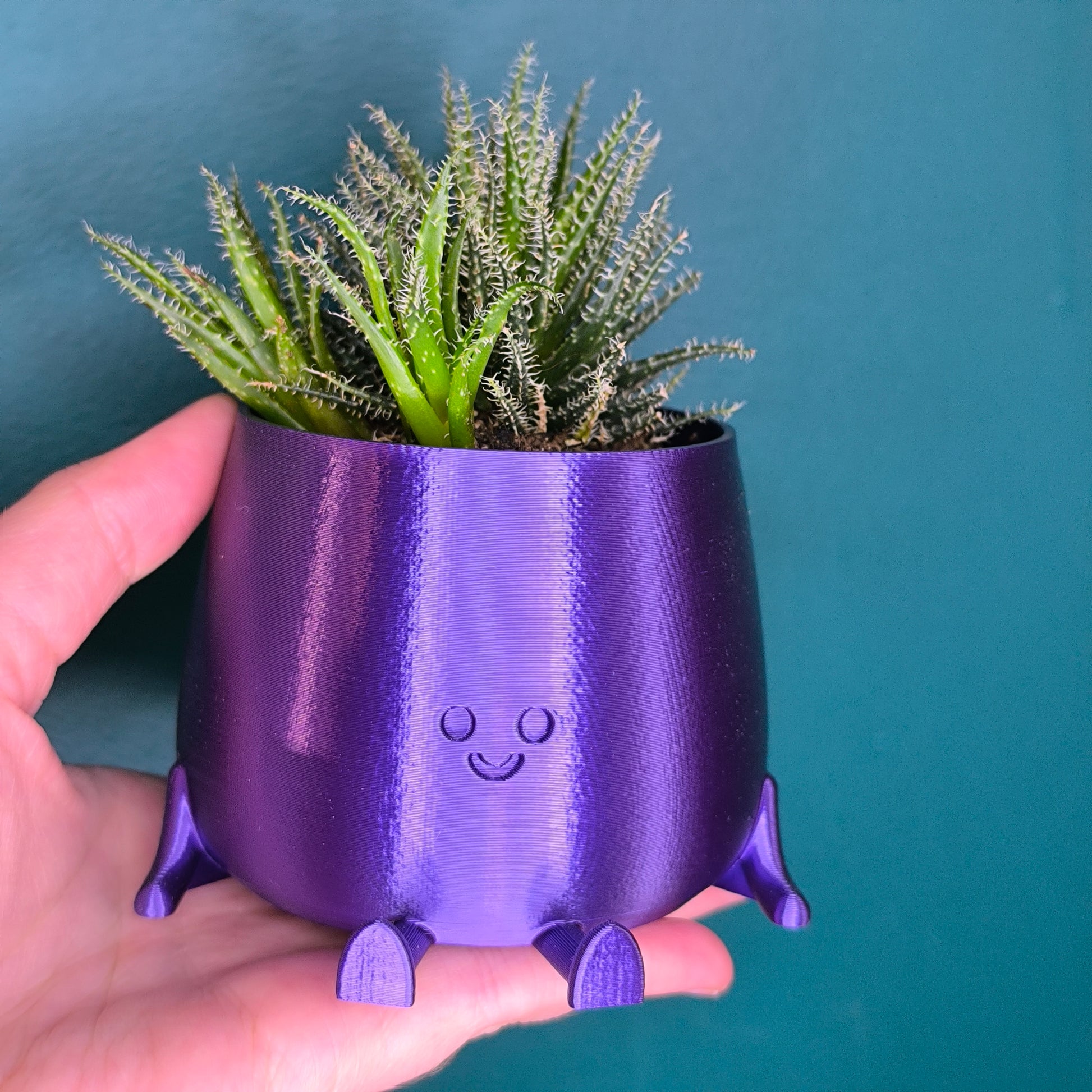 This mini pot takes roughly 4-5 hours on the 3d printer made with a bioplastic from the starch of plants like corn, sugar cane and sugar beet