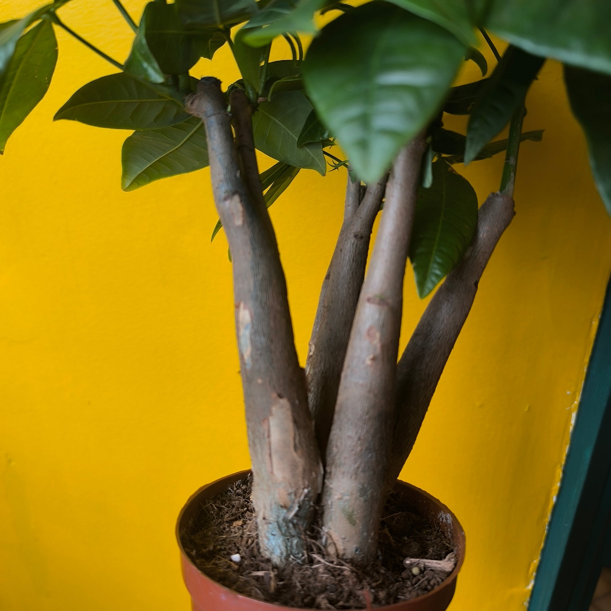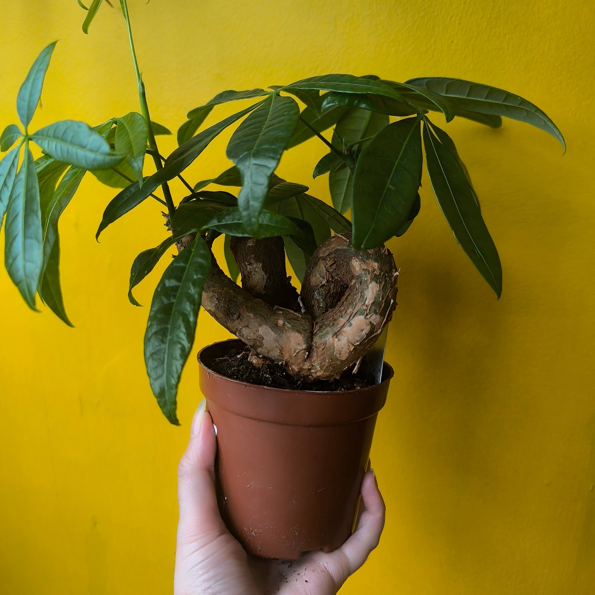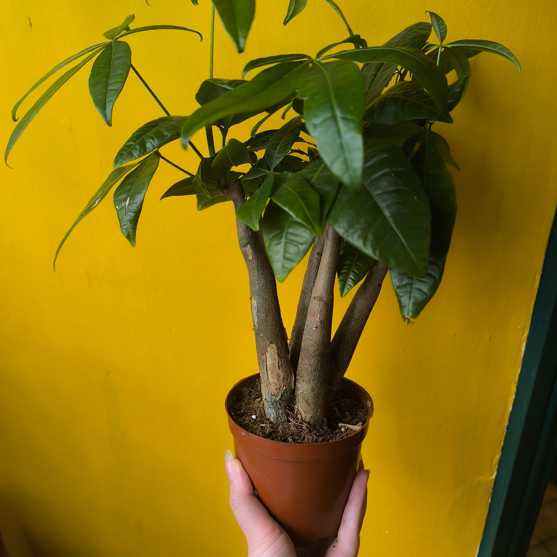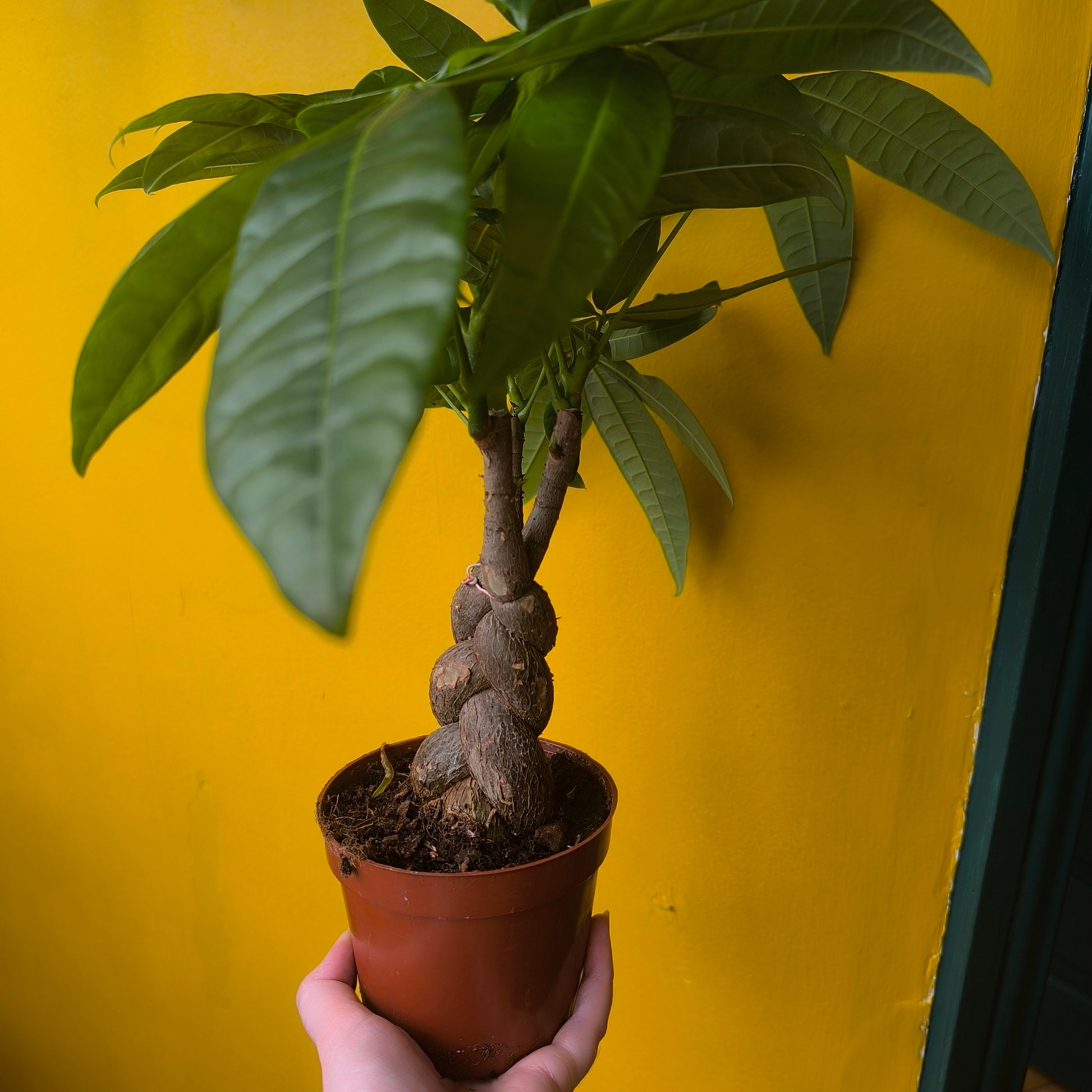 Pachira aquatica, commonly known as the money tree is a highly sought-after houseplant for its beautiful green and hand-shaped leaves and often a braided trunk. This selection have been grown more compact with a fatter more mature trunk giving them a more unusual shape than normal!
