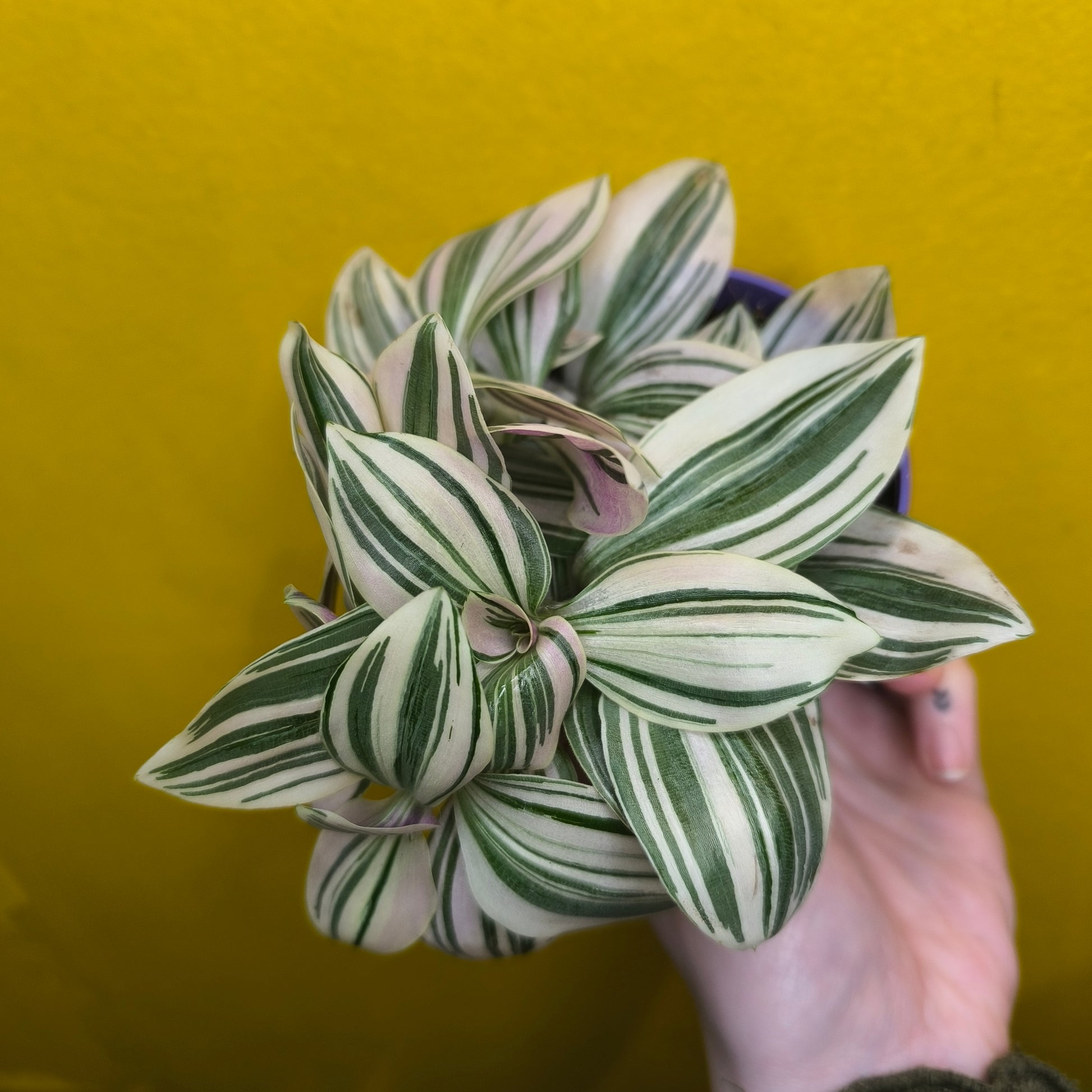 Tradescantia or the Spiderwort is a vibrant and easy-care houseplant that adds a pop of colour to any space. Its striking white and pink striped leaves create a beautiful trailing effect.